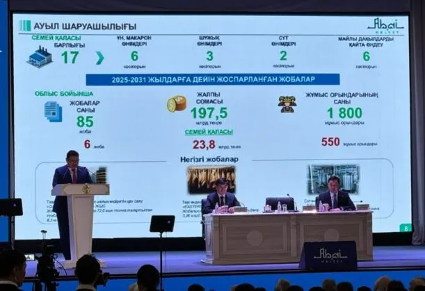 Соның ішінде Семей қаласында жалпы сомасы 23,8 млрд теңгені құрайтын 6 инвестициялық жобаны жүзеге асыру көзделіп отыр. Бұл жобалар қаланың агроөнеркәсіптік әлеуетін арттырып, жаңа жұмыс орындарын ашуға және өндіріс көлемін ұлғайтуға мүмкіндік береді.