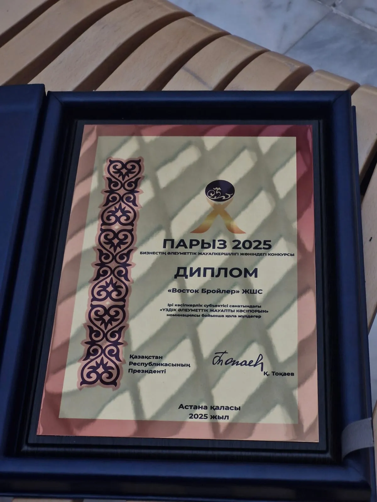 Астана қаласында өткен «Алтын сапа» және «Парыз» республикалық байқауларында Семей қаласындағы «Шығыс Бройлер» жауапкершілігі шектеулі серіктестігі жоғары нәтижеге қол жеткізді. Кәсіпорын «Парыз» байқауы аясында «Үздік әлеуметтік жауапты кәсіпорын» аталымы бойынша қола жүлдеге ие болып, Қазақстан бойынша үздік үштіктің қатарына енді.