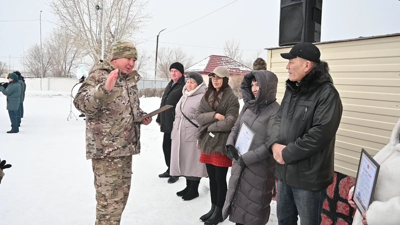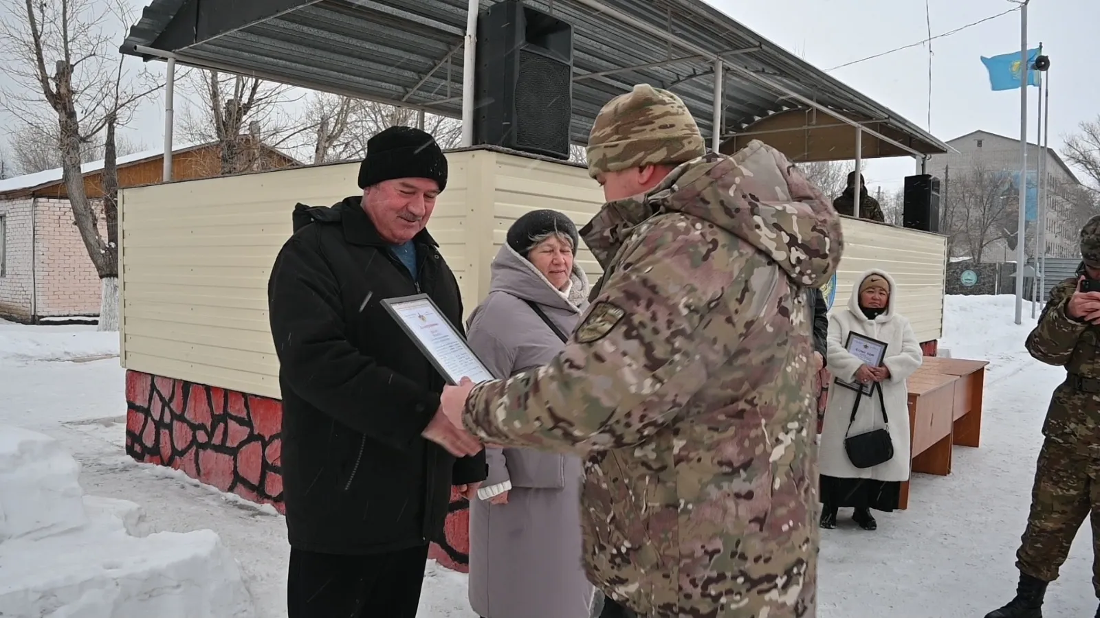 ​Салтанатты шараға үздік деп танылған сарбаздардың ата-аналары арнайы шақырылып, әскери бөлім командирі атынан алғыс хаттармен марапатталды. Бұл - жас сарбаздардың тәрбиесі мен ел алдындағы борышын абыроймен атқаруына үлес қосқан ата-аналар еңбегіне көрсетілген құрмет.