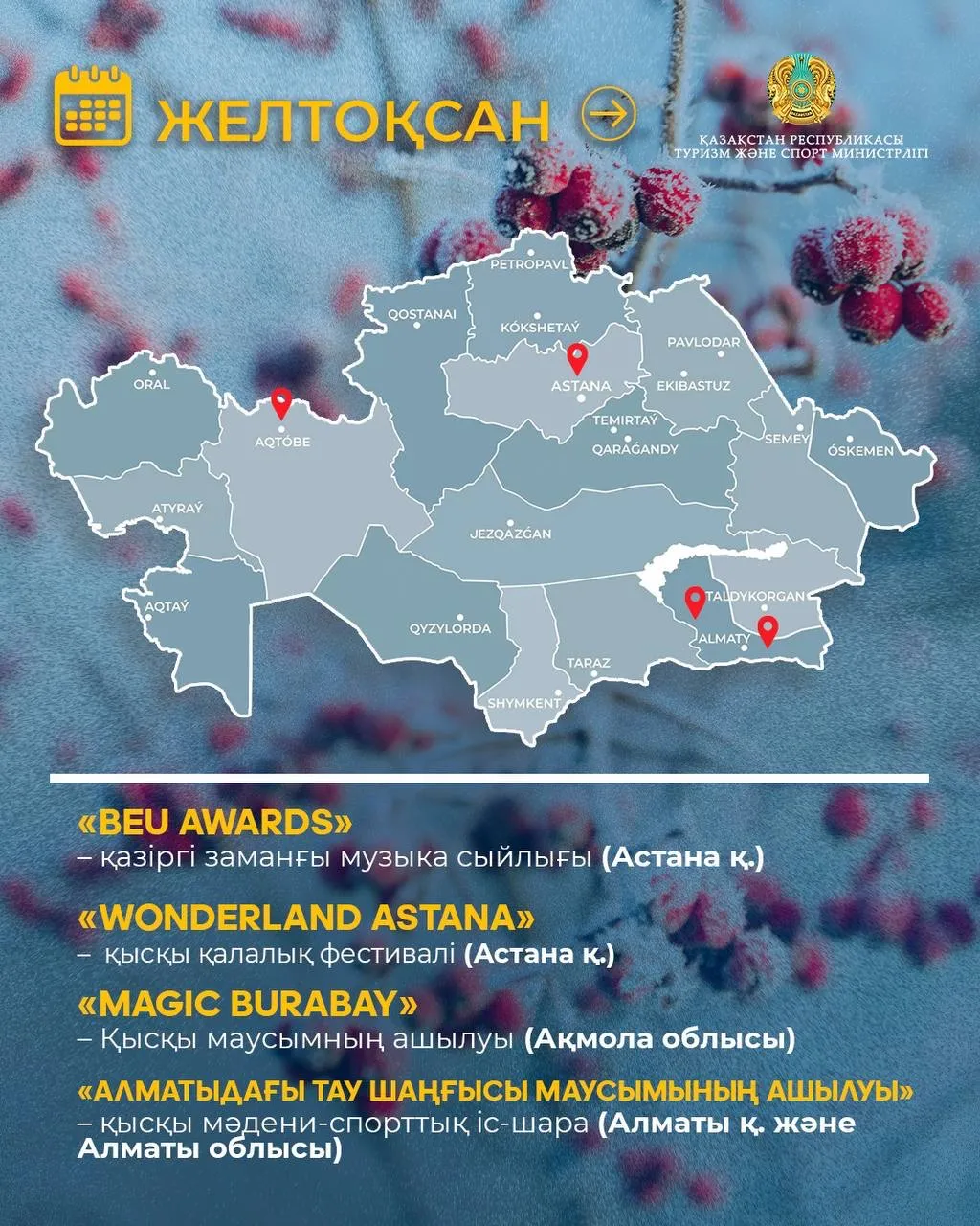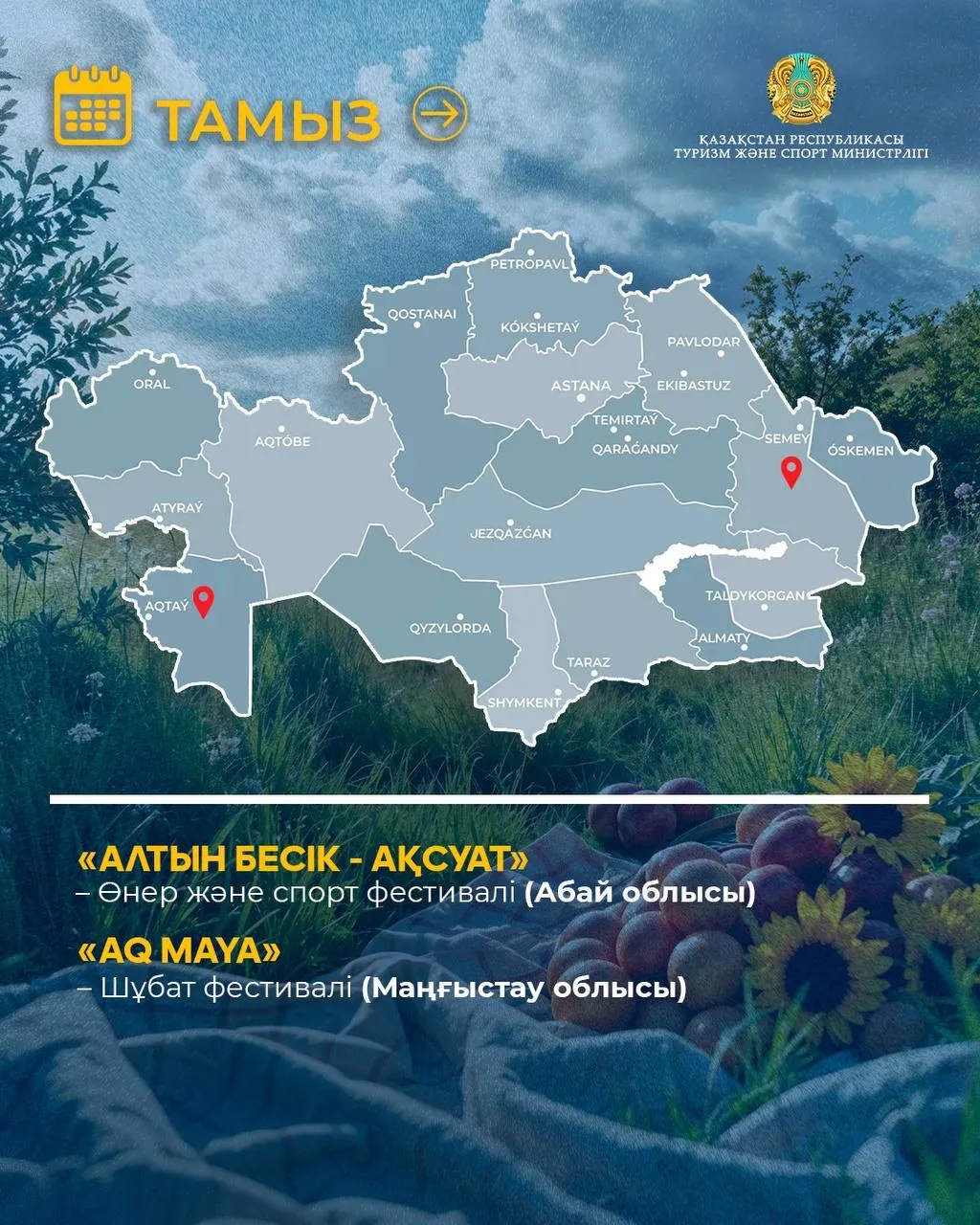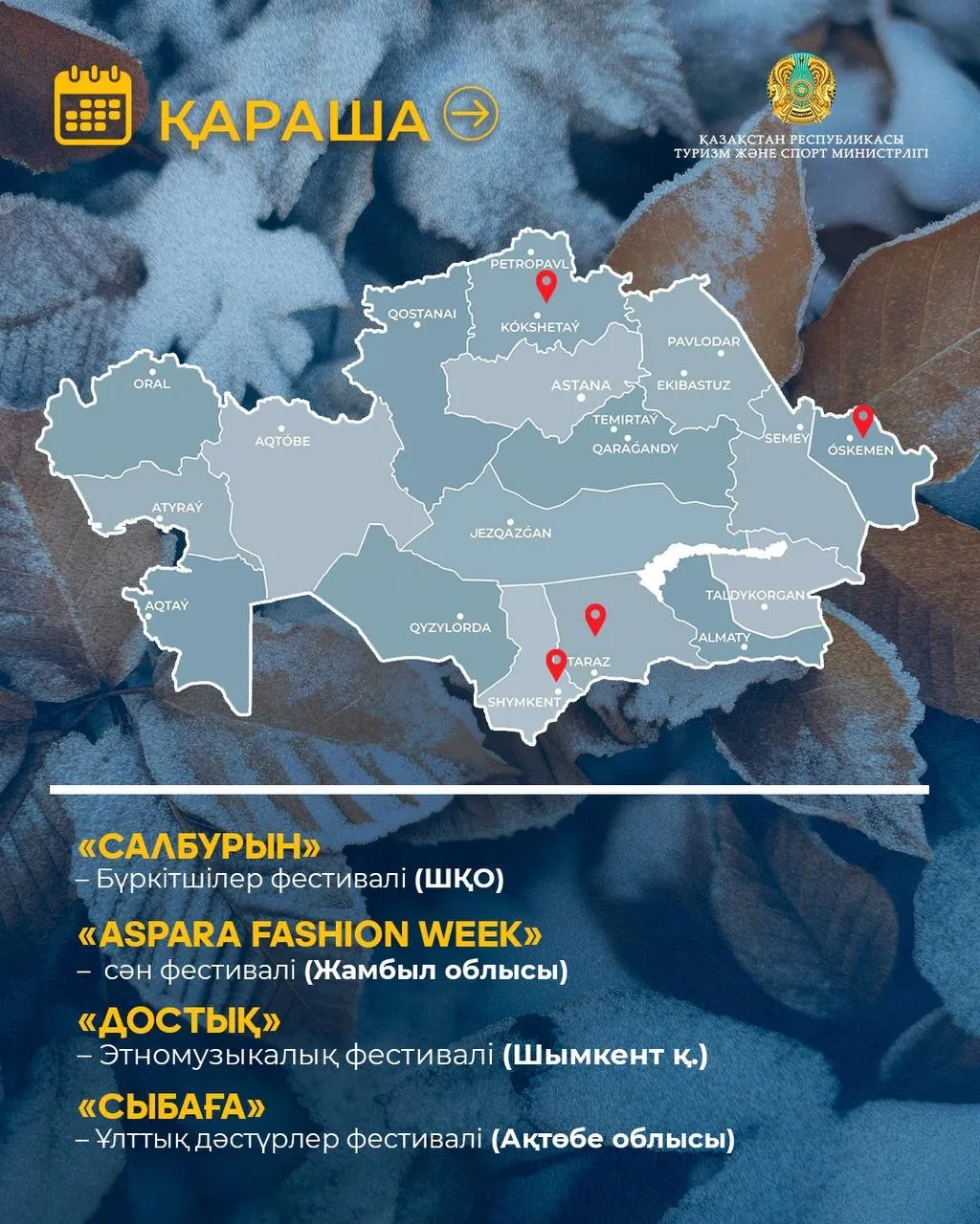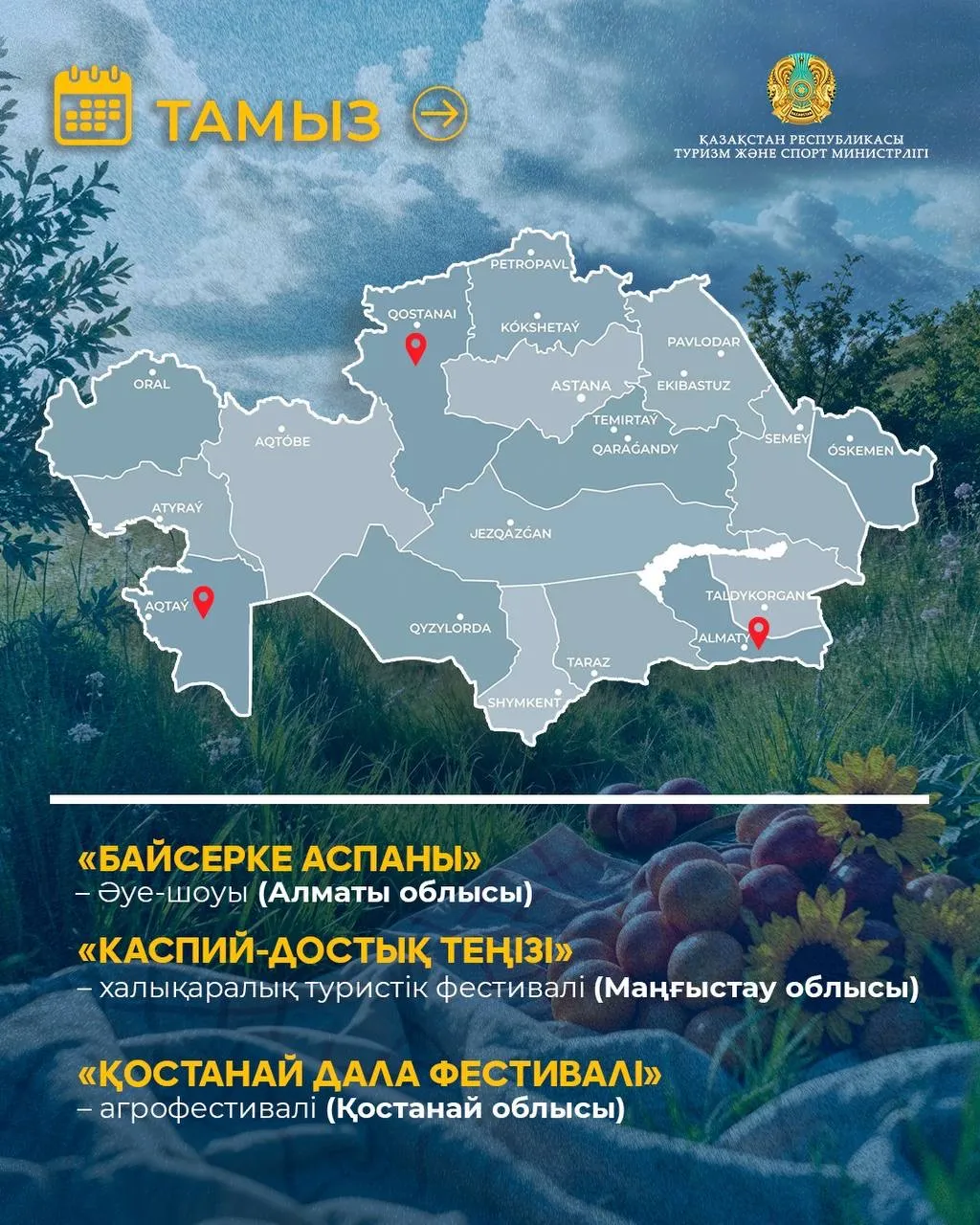Туризм және спорт министрлігі 2026 жылға арналған мәдени-туристік іс-шаралар күнтізбесін дайындады