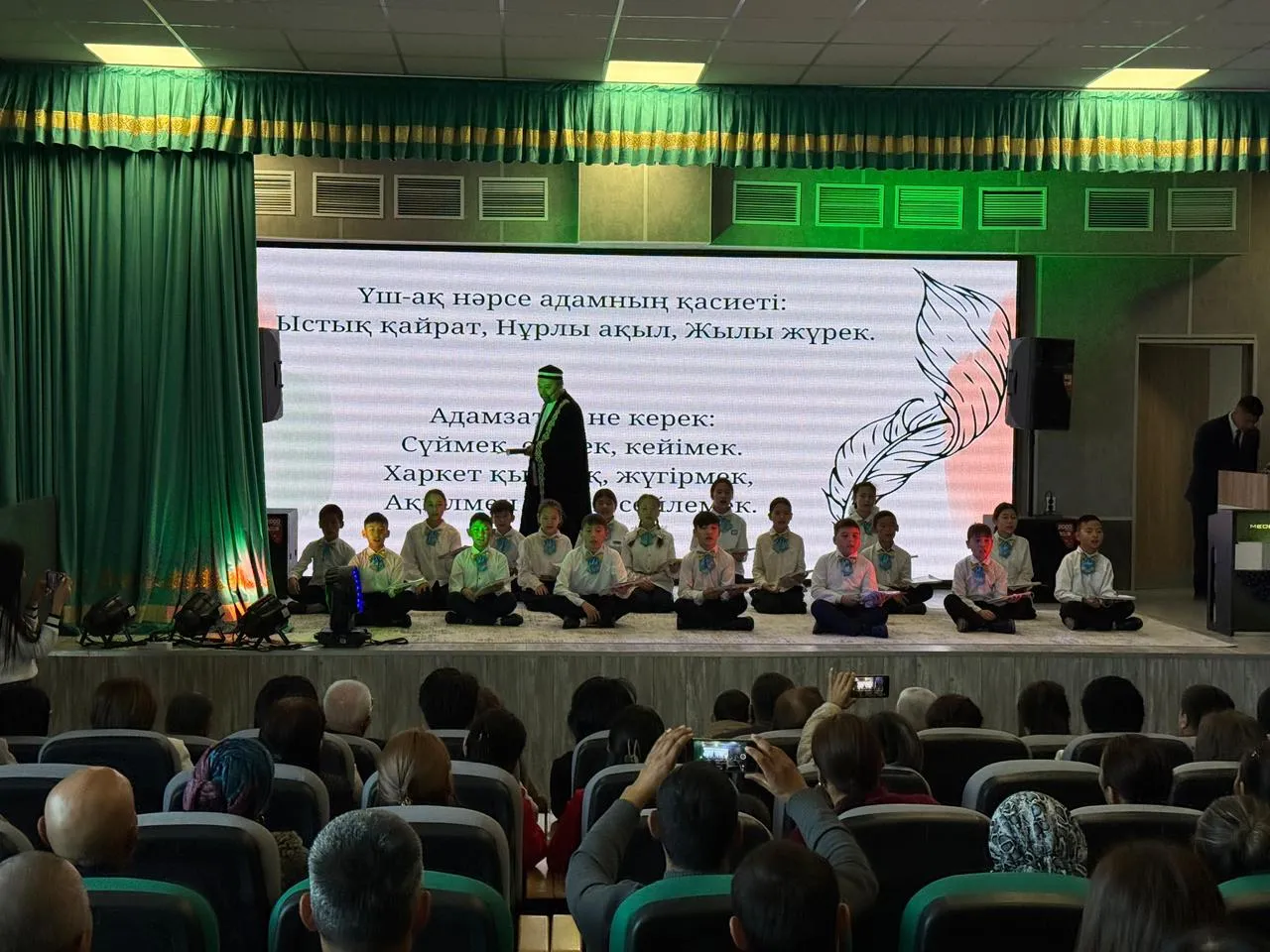 В завершение мероприятия ученики представили постановку, посвящённую 180-летию Абая, прочитали стихи и отрывки из его произведений, исполнили песни. В фойе школы была оформлена интерактивная зона «Стена будущего», где гости оставили свои пожелания.
