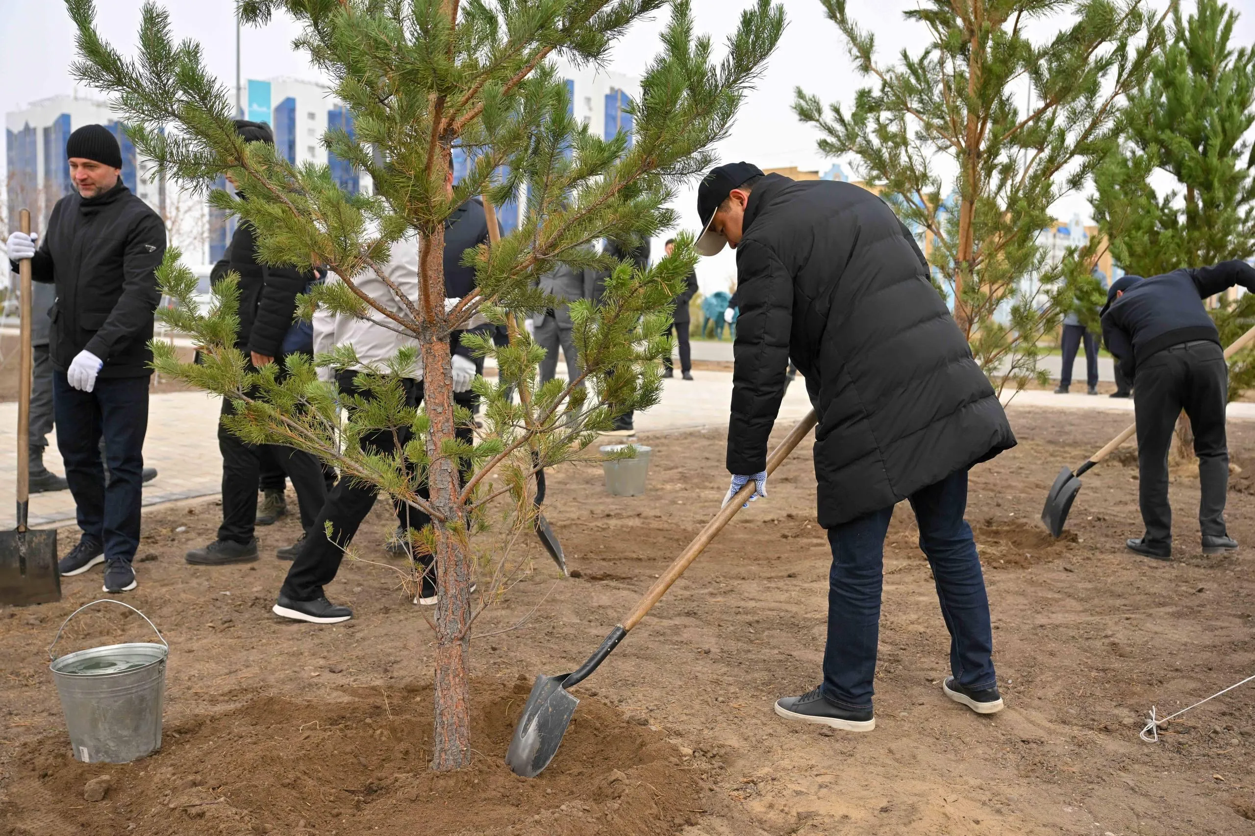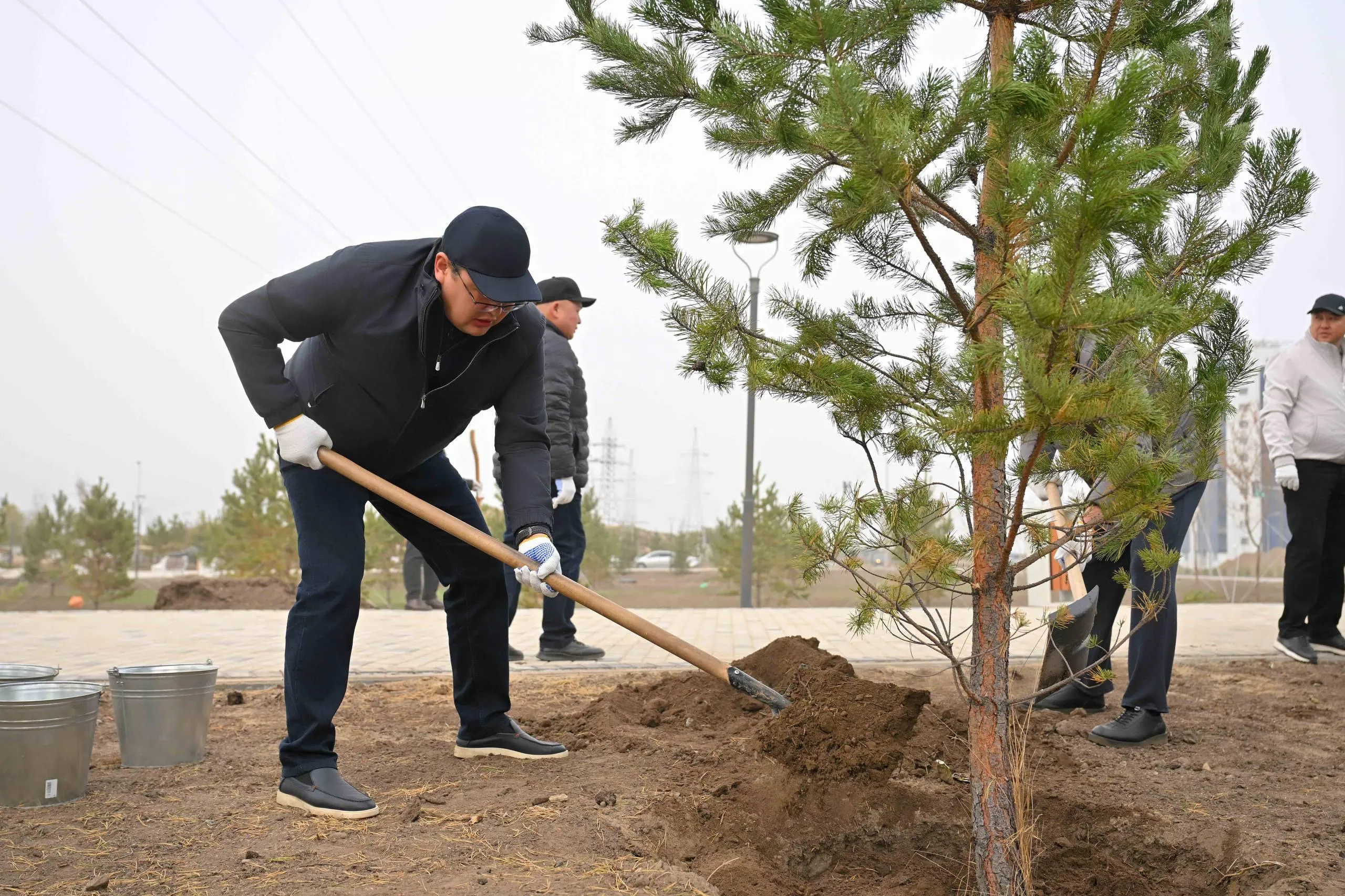 В первую очередь посадка сосен прошла в новом парке, строящемся в микрорайоне Карагайлы. В акции приняли участие аким области Берик Уали.