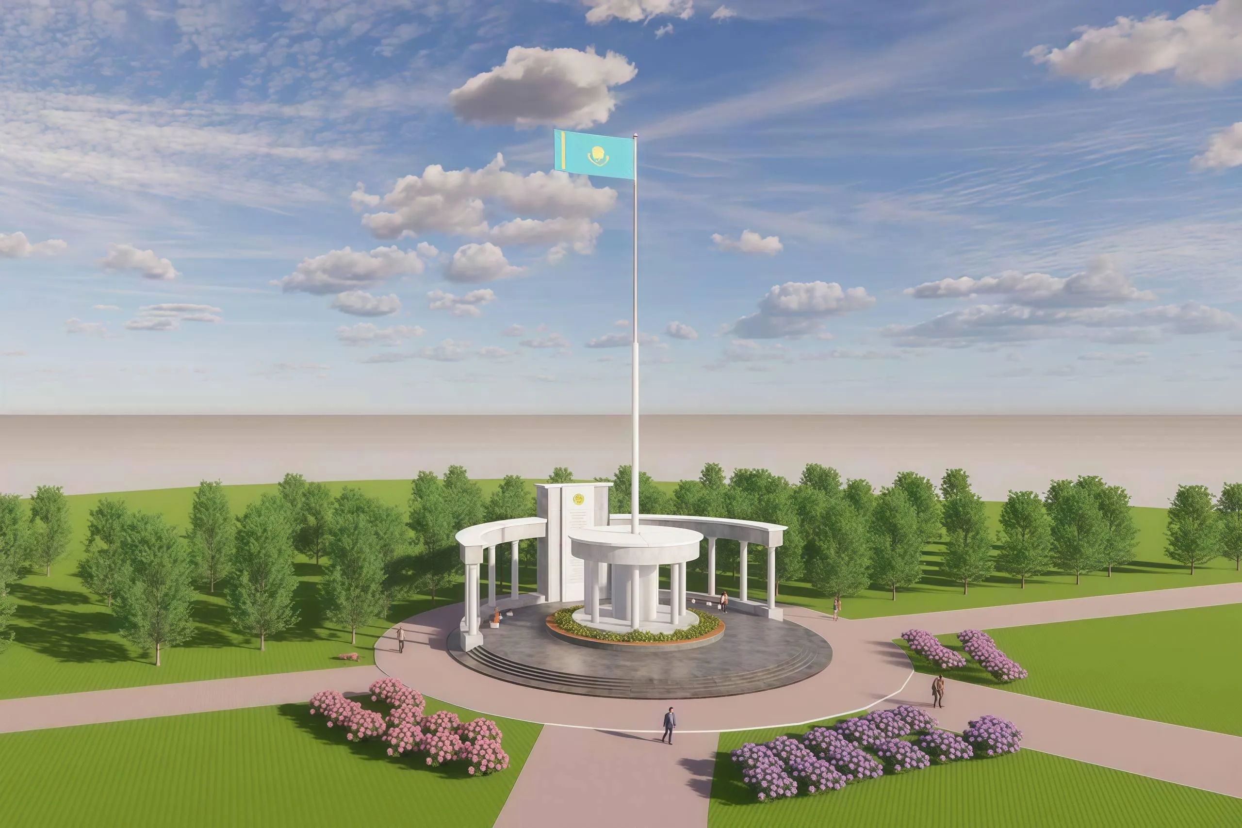 Объект спроектирован в круглой форме диаметром 28 метров, общая высота составит 35 метров. Площадь государственных символов будет построена в соответствии с современными требованиями, а прилегающая территория полностью благоустроена. Ожидается, что она станет одним из любимых мест отдыха жителей и гостей города.