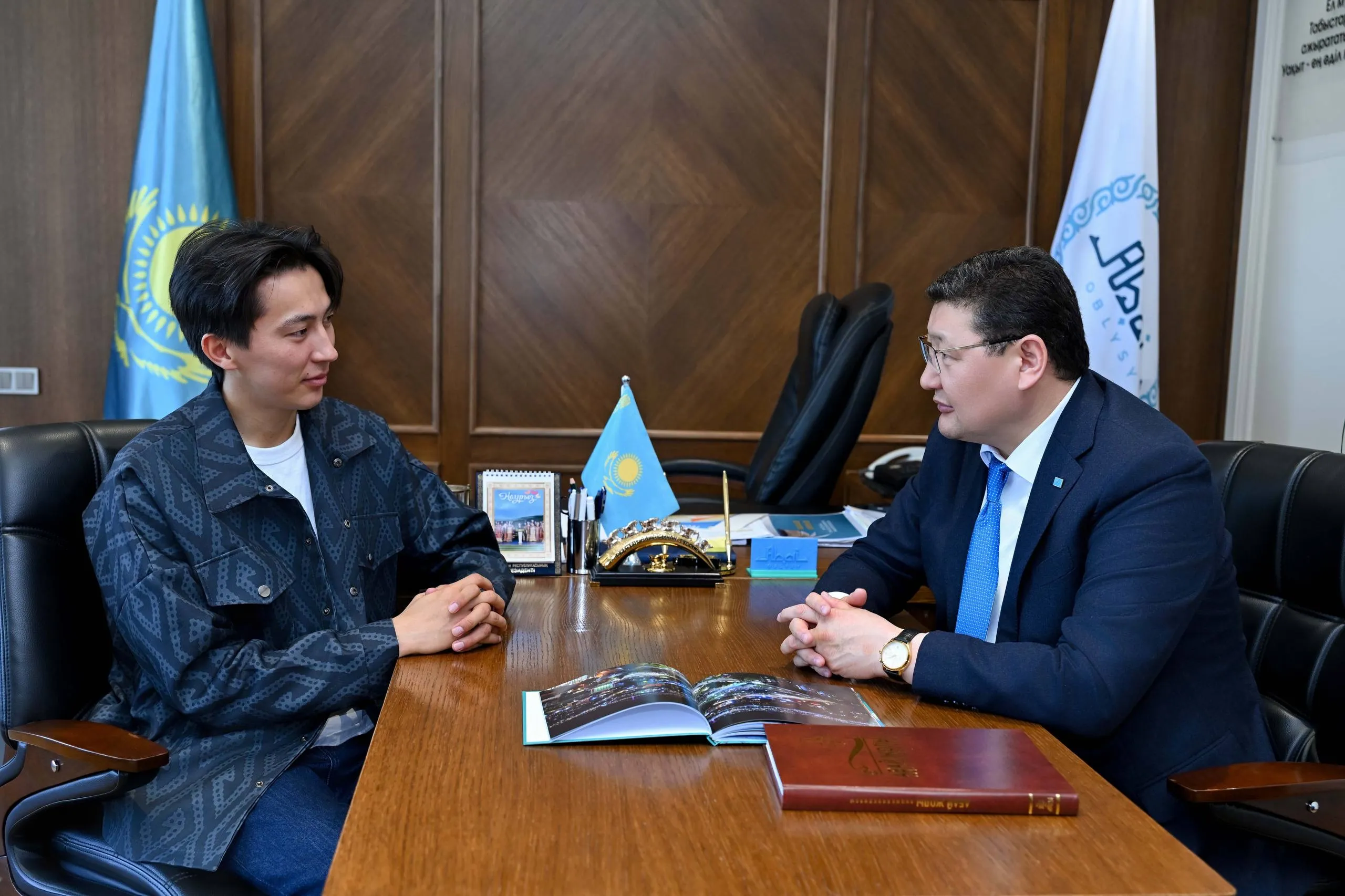 Сегодня аким области Абай Берик Уали провёл встречу с известным казахстанским путешественником и видеоблогером Дастаном Мухамедрахымом.