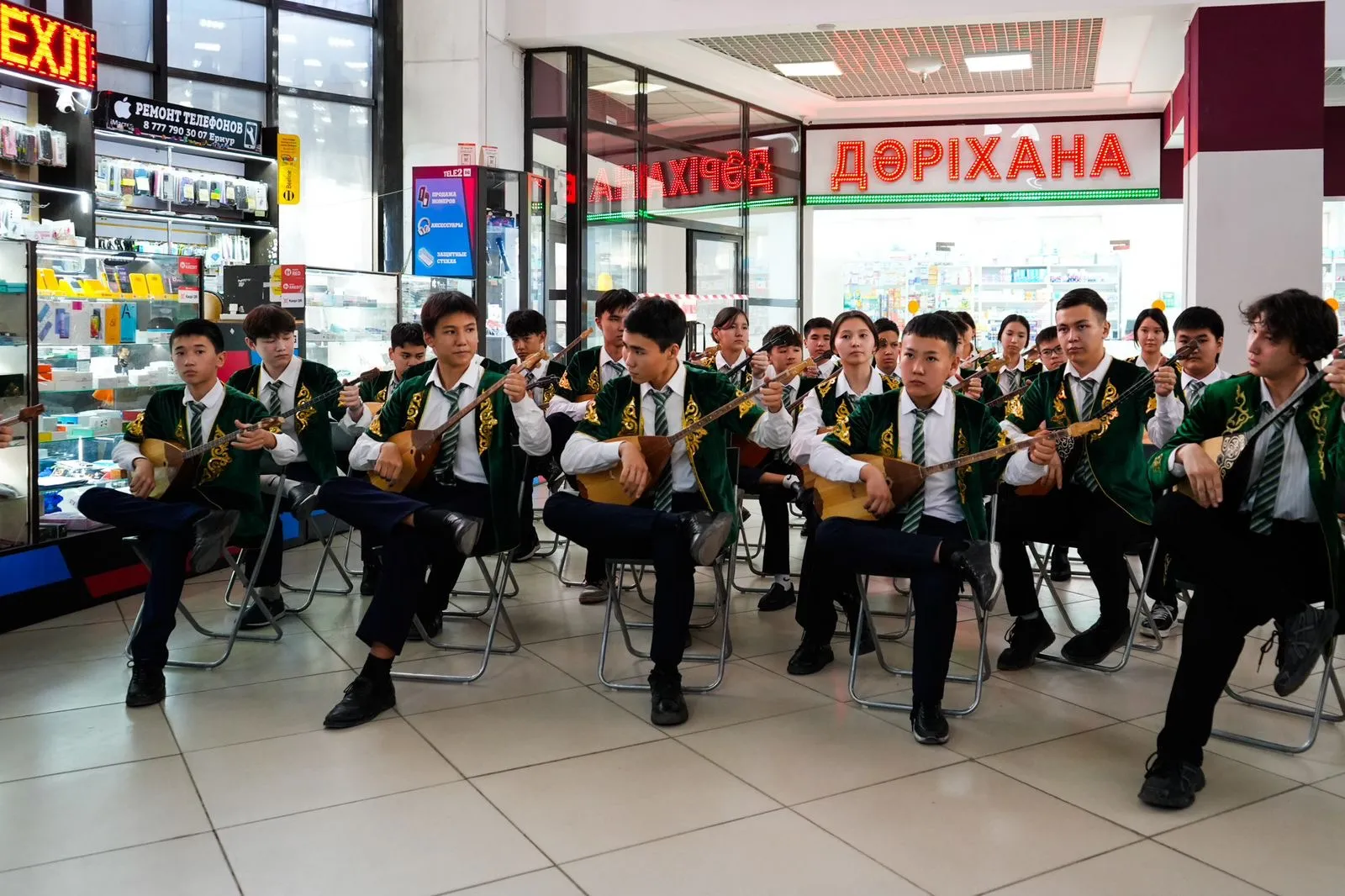 В честь национального праздника – Дня Республики учащиеся Назарбаев Интеллектуальной школы города Семей организовали в торговом центре Avenue флешмоб домбристов «Ұлт рухы – домбыра үні».