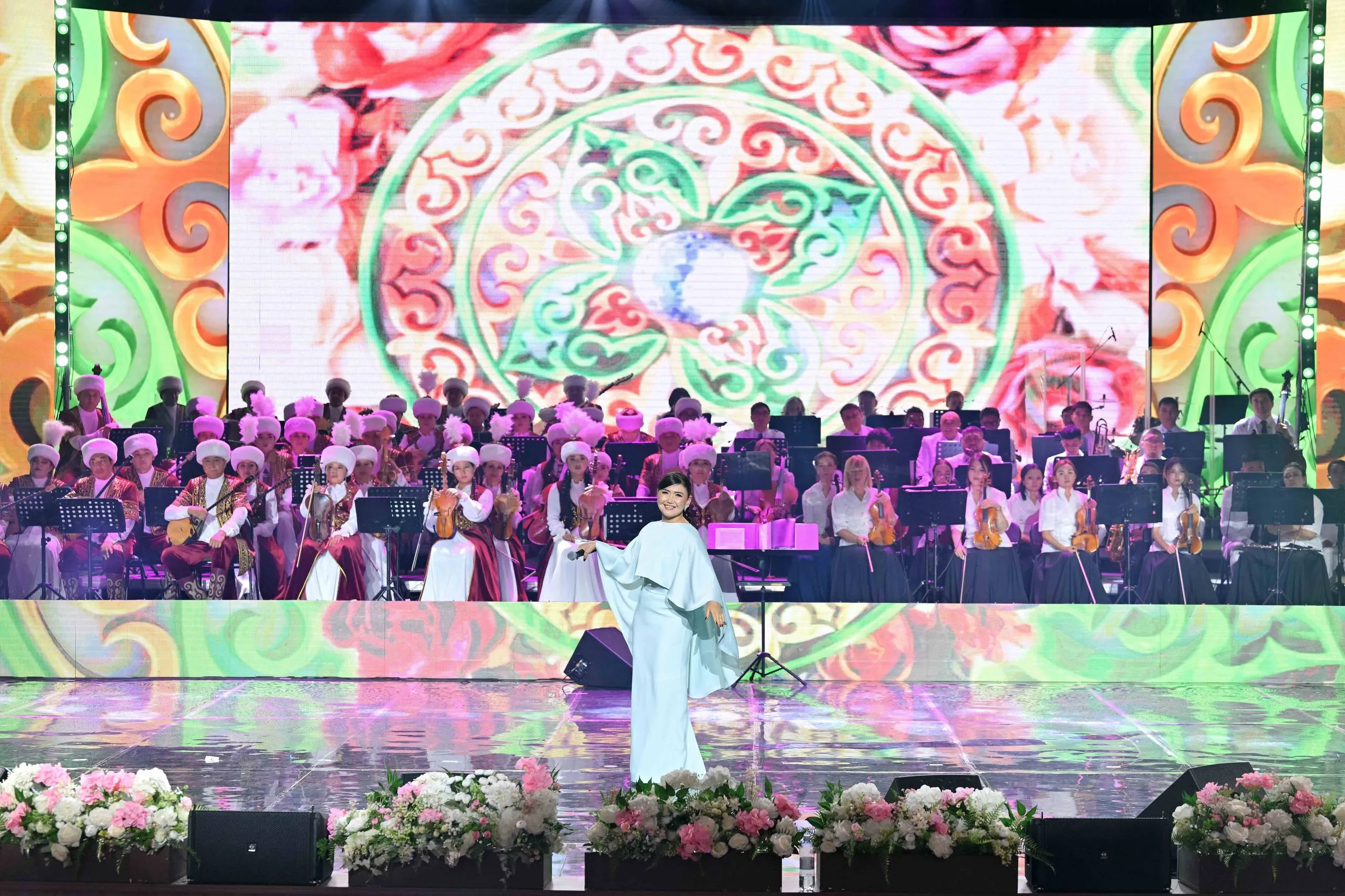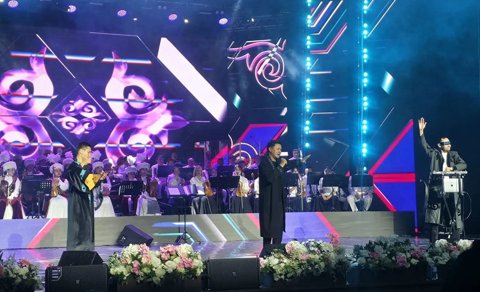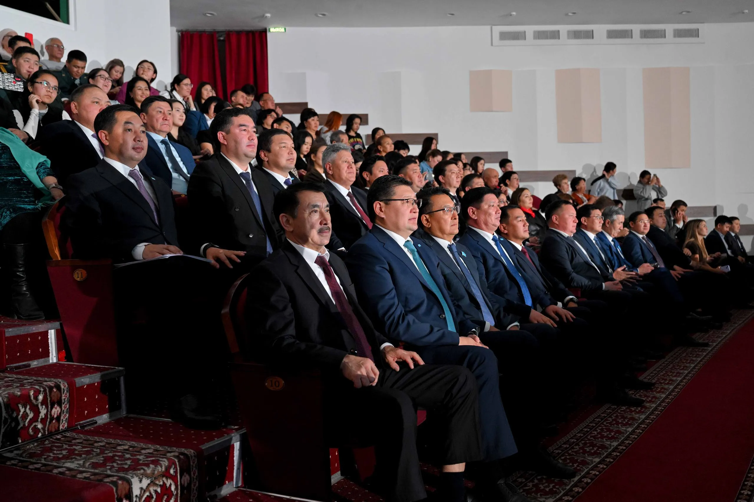Торжественное собрание завершилось праздничным концертом. Для зрителей выступили заслуженный деятель Казахстана Досымжан Танатаров, Зарина Омарова, Молдир Ауелбекова, солист квартета «Жігіттер» Мырзахан Маканов, артисты областной филармонии, студенческий хор музыкального училища им. М.Тулебаева и эстрадно-симфонический оркестр акима области Абай.