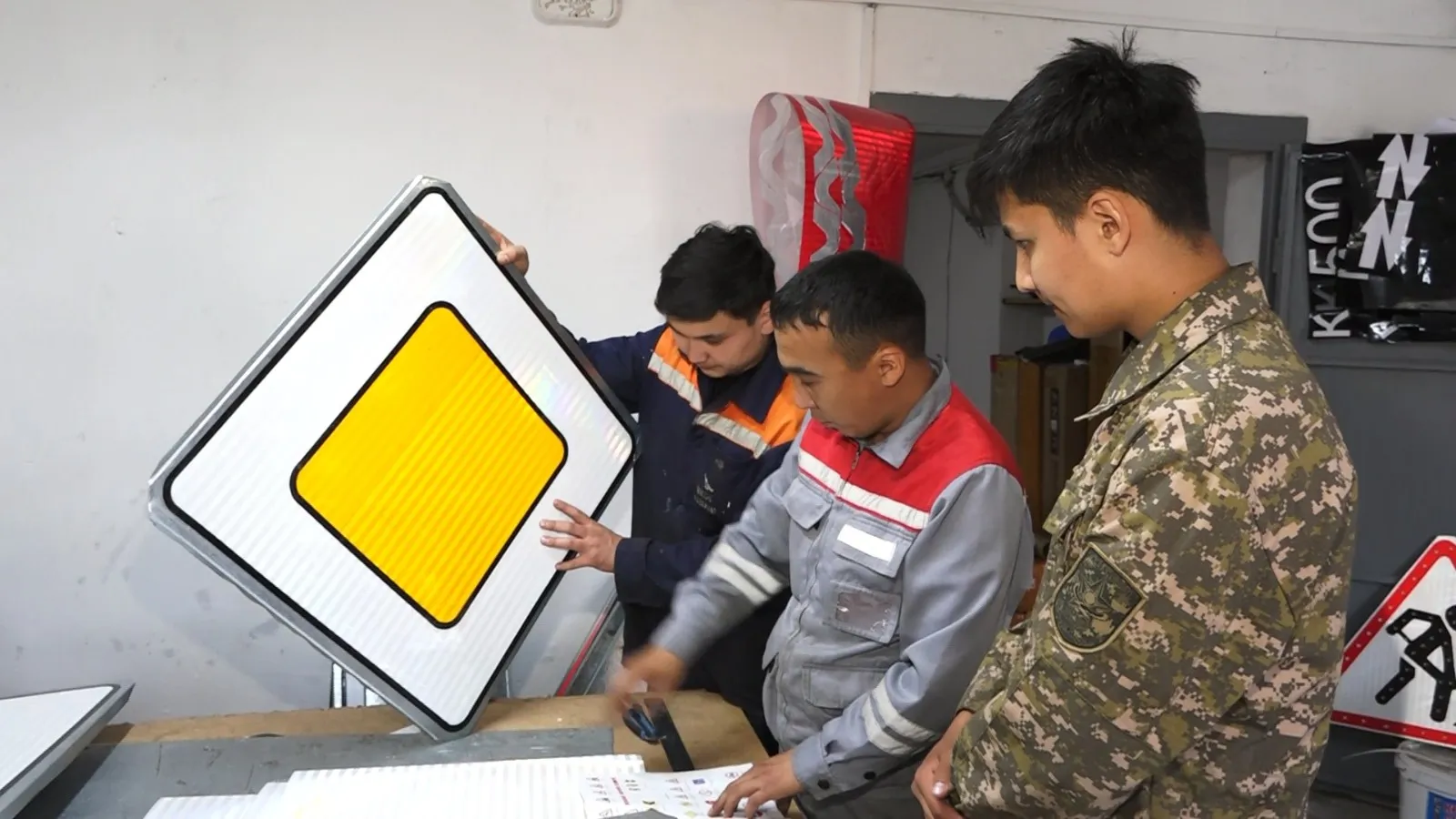 Мұнда жұмыс жыл бойы жүргізіледі. Осы уақыт ішінде мың жарымға жуық жол белгісін жаңартады. Тәжірибелі мамандар жастарға білгенін үйретуден жалыққан емес. Өйткені маман тапшы. Жол белгілерін жасау цехының аға шебері Мейрамхан Жақыпбековтың айтуынша,